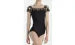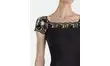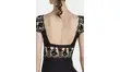 Coupe trapèze dans le dos avec un tissu dentelle, flocké de motif en velours.