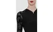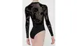 Joli jeu de transparence en tulle strech flocké fleur dans le dos,au niveau des épaules et des bras.