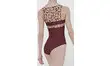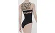 Justaucorps bi matière en microfibre unie et tulle transparent flocké an niveau des épaules, du buste et dans le dos.