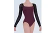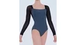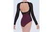 Justaucorps à manches longues en microfibre, tulle strech et jersey chiné,grand décolleté au dos.